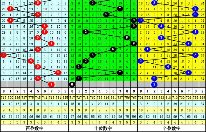 百位上期开出号码5,为奇数,奇数号近期开出相对较多,上期出现奇数号之后,本期预计奇数号再次开出,参考号码7。