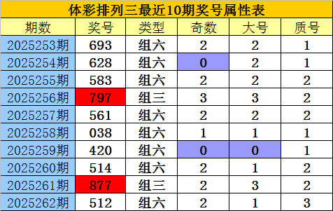 老郑体彩排列三第2025263期号码推荐: